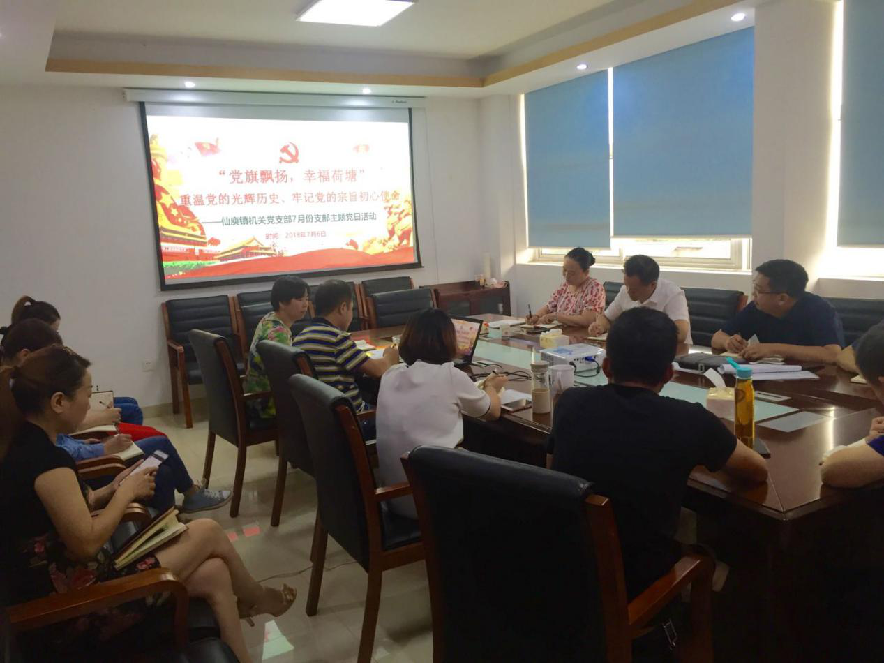 7月6日上午,仙庾镇机关党支部组织机关全体党员开展以“党旗飘扬,幸福荷塘”——重温党的光辉历史、牢记党的宗旨初心使命为主题的党日活动。